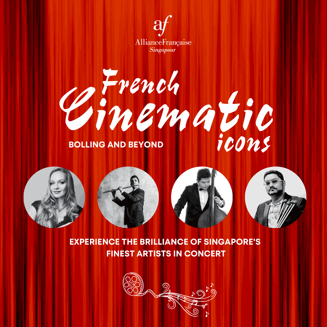 4 days before the grand opening of the French Film Festival, immerse yourself back in the world of French cinema, joining "French Cinematic Icons: Bolling and Beyond" concert, and discover the most iconic French composers and their award-nominated and acclaimed movie soundtracks interpreted by Singapore Symphony Orchestra musicians.