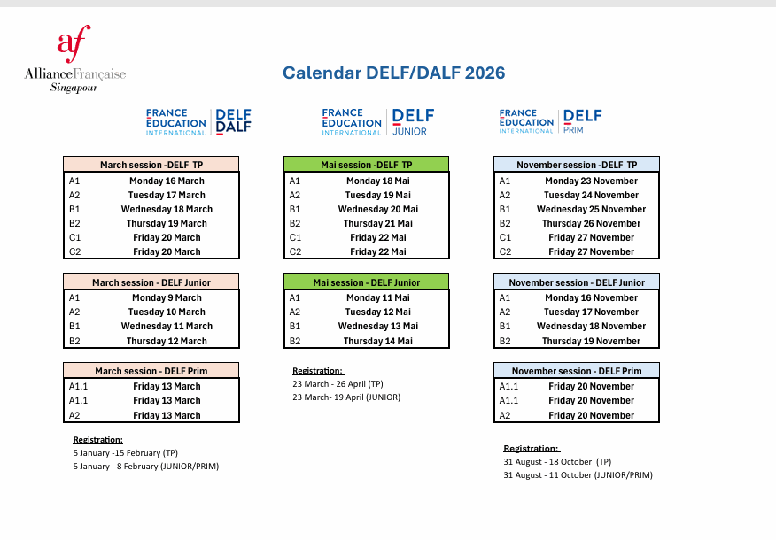For a complete overview of DELF/DALF 2026 exam calendar, click here.
