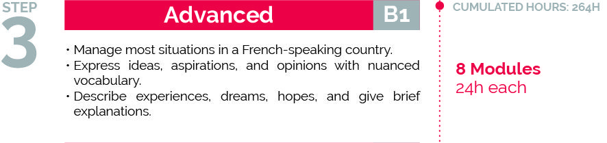 At the end of level B1, you can take the DELF B1 exam: an official and international recognition of your level in French.