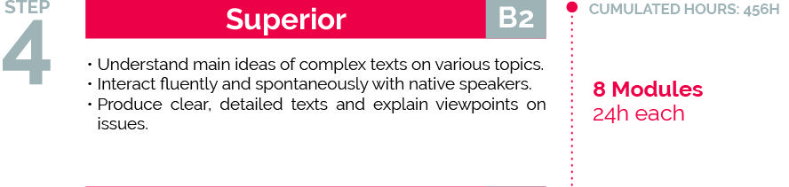 The Superior B2 level program can be achieved within 6 or 8 terms depending on the pace you choose.